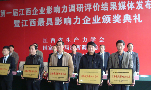 為了挖掘全省各行業(yè)在建設富裕和諧秀美江西中涌現出來(lái)的標桿性企業(yè),打造行業(yè)形象典范,江西省生產(chǎn)力學(xué)會(huì )、國家統計局江西調查總隊聯(lián)合開(kāi)展了第一屆江西企業(yè)影響力調研評價(jià)活動(dòng)。并于2012年3月21日在江西南昌舉行了調研評價(jià)結果媒體發(fā)布會(huì )暨江西最具影響力企業(yè)頒獎典禮。