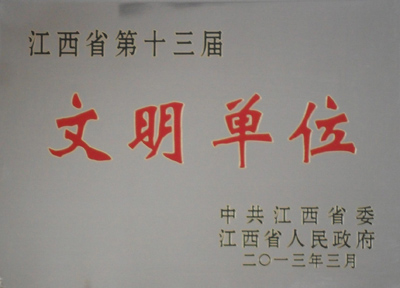 近日,省委、省政府下發(fā)通報,表彰江西省第十三屆“文明單位”。公司榜上有名。這是公司連續三屆榮獲省級“文明單位”殊榮。