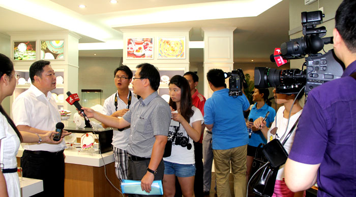 7月7日上午,由中央電視臺、光明日報、江西日報、江西電視臺、江西人民廣播電臺等20多家中央、省級媒體組成的記者采訪(fǎng)團專(zhuān)程來(lái)景,集中采訪(fǎng)報道我市陶瓷文化及產(chǎn)業(yè)發(fā)展情況。公司黨委書(shū)記、董事長(cháng)王耀全程陪同采訪(fǎng)。