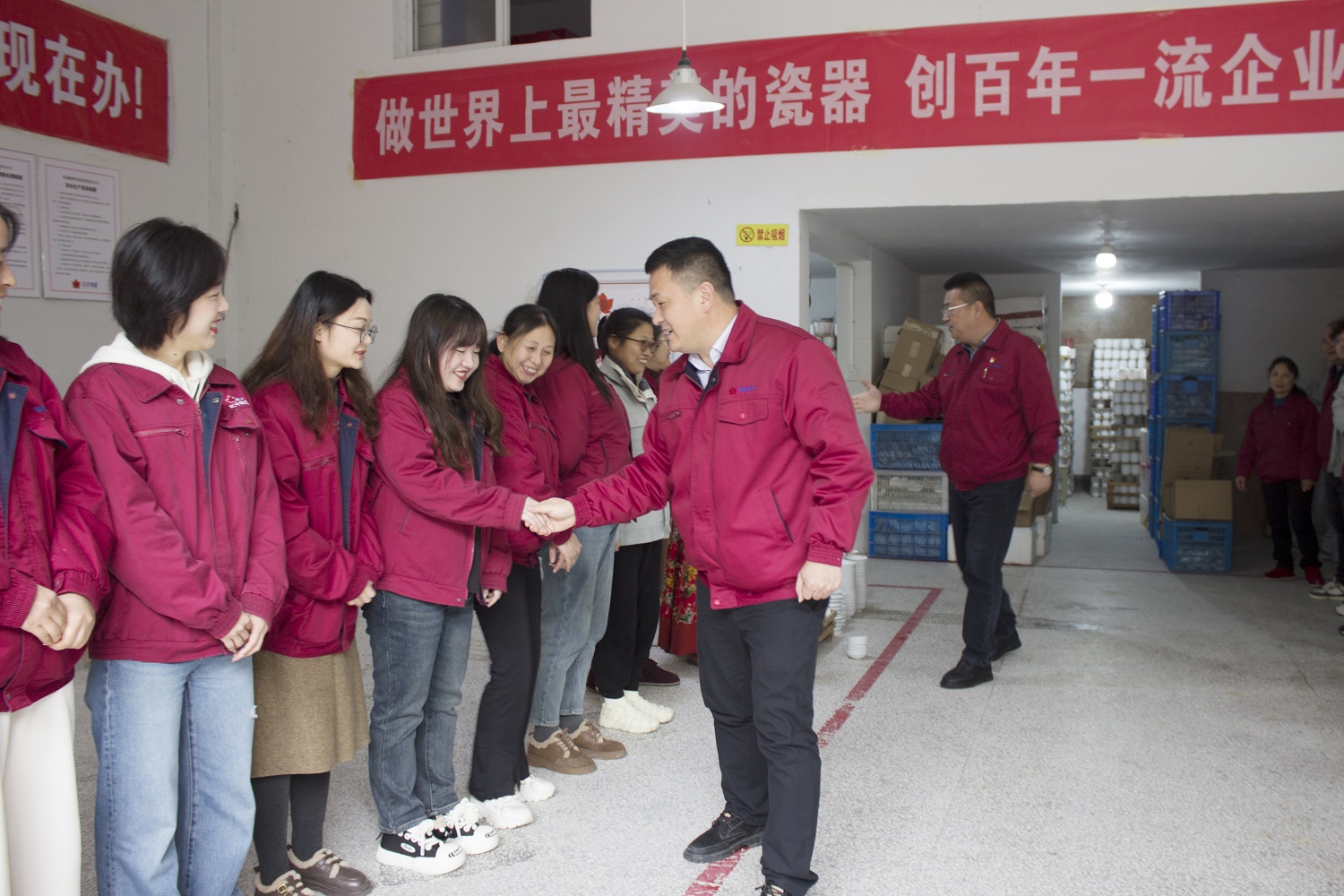 在金品陶公司、紅葉公司一廠(chǎng)、三廠(chǎng)、研究所和窯具廠(chǎng),領(lǐng)導們與夾道歡迎的員工致以新春祝福。希望生產(chǎn)口在提質(zhì)增效上要有新?lián)敗?/span>