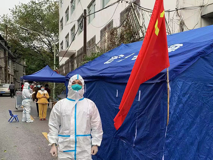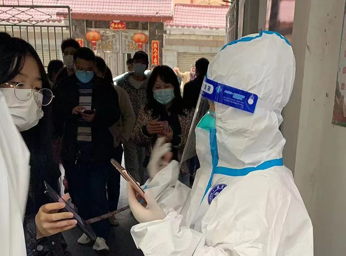 社區“雙報到”,抗疫顯擔當。疫情來(lái)襲,黨員穿上“大白”防護服、做好秩序維護、發(fā)放健康檢測表、信息錄入、政策宣傳、掃碼查驗、上門(mén)進(jìn)行采集核酸……。在各管控小區,黨員志愿者們的身影,一直在為小區居民們辛苦地付出著(zhù)?!拔覀兌际切^業(yè)主,又都黨員志愿者,在這種特殊時(shí)刻更要挺身而出,體現作為黨員的本分,在危難時(shí)刻顯擔當。根據防疫工作安排,每天的工作時(shí)長(cháng)都不固定,但我們每天都從半夜工作到凌晨。我們社區大家的配合度都很高,整個(gè)小區情況比較平穩,我們覺(jué)得能夠在疫情防控工作貢獻一些力量感到很開(kāi)心?!蔽S狼逭f(shuō)道。