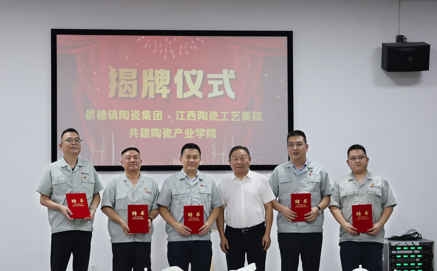 為深入貫徹落實(shí)國家推進(jìn)“一體兩翼”重大戰略部署,更好地服務(wù)地方陶瓷產(chǎn)業(yè)發(fā)展,助推陶瓷職業(yè)教育發(fā)展。8月16日下午,在景德鎮陶瓷集團行政樓一樓會(huì )議室隆重舉行江西陶瓷工藝美術(shù)職業(yè)技術(shù)學(xué)院與景德鎮陶瓷集團共建陶瓷產(chǎn)業(yè)學(xué)院揭牌儀式。江西陶瓷工藝美術(shù)職業(yè)技術(shù)學(xué)院黨委書(shū)記方文龍,黨委委員、副院長(cháng)朱輝球,景德鎮陶瓷集團黨委書(shū)記、董事長(cháng)鄧景揚,黨委副書(shū)記、總經(jīng)理邢浩,黨委委員、工會(huì )主席鄧必春,黨委委員胡軼,黨委委員、副總經(jīng)理王小勤出席揭牌儀式。學(xué)院及企業(yè)相關(guān)部門(mén)負責人參加。